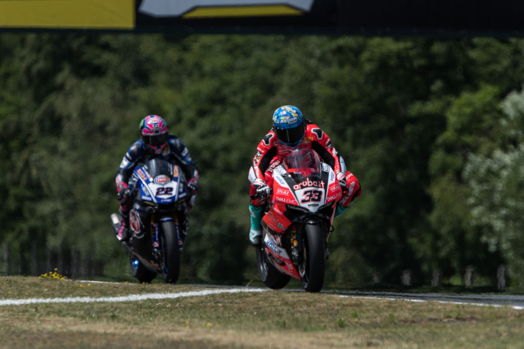 Given the struggles of Davies in the Czech Republic, a round which had not shown an upturn in form for the Welshman after a tough Donington, it was hard to see him getting near the Yamahas of Michael van der Mark and Alex Lowes. The Yamaha riders were the first to try the new, wider, taller Pirelli tyre and it was one of the things which helped Michael van der Mark take the double back in the UK. On the other hand, Davies had struggled since its introduction and it would not be a ludicrous assumption that missing something with this new tyre is a major factor in the number 7’s current struggles – although, it is a surprise that it is he that is struggling, not the diminutive Melandri.