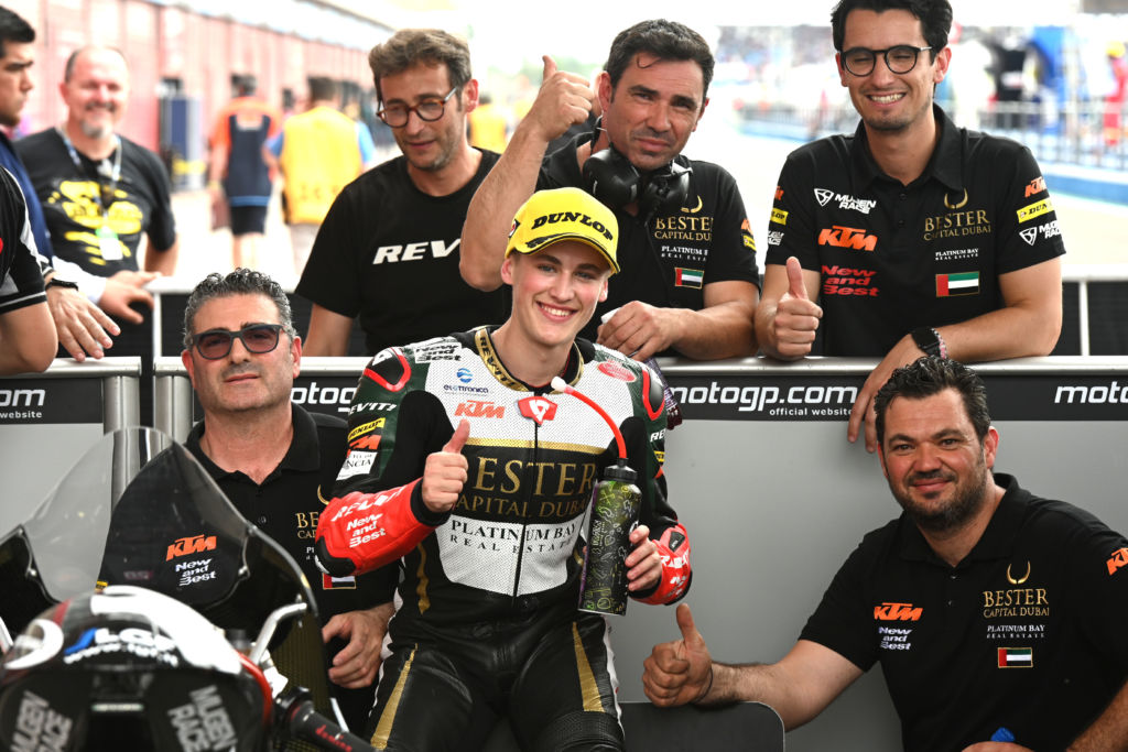From Q1, Andrea Migno (Bester Capital Dubai), Aron Canet (Sterilgarda Max Racing Team), Vicente Perez (Reale Avintia Arizona 77) and Jakub Kornfeil (PruestelGP) joined the top fourteen riders from the three free practice sessions for the Q2 pole position shootout.