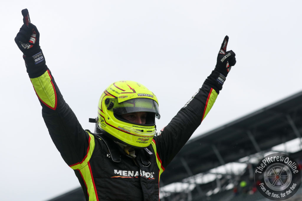 Pagenaud started the race in eighth and was only making very steady progress until the rain started falling, and from there on in he excelled. With seventeen laps to go Pagenaud embarked on his charge, first passing the duelling Spencer Pigot and Ed Jones before moving onto the then third-placed Matheus Leist. The Brazilian was unable to fend off Pagenaud who then set his sights on Harvey in second, and race leader Dixon.