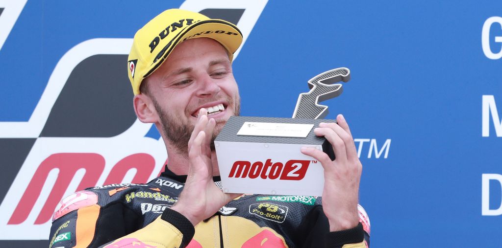 The race took place after the MotoGP race, meaning the track was coated with MotoGP’s Michelin rubber in the early phases of the Moto2 race before the intermediate class re-painted the lines with their Dunlop tyres. Often, this condition can create increased grip in the early stages of the Moto2 running, and it was Binder who made the most of this.