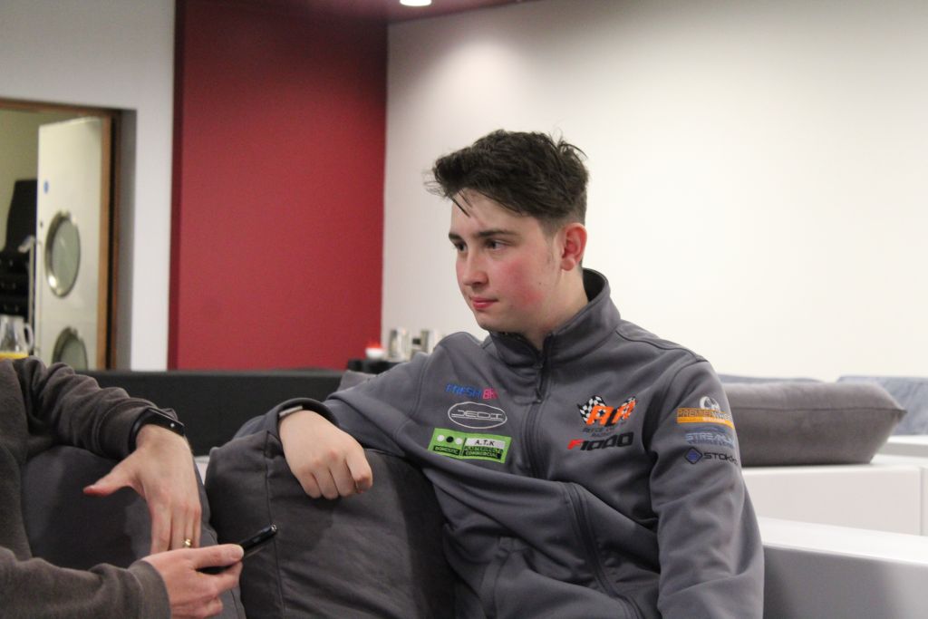 The step for me was quite difficult. I had to commit to lots of training and testing. Tests meant that I had to travel to Bruntingthorpe, but I didn’t have my licence yet. It was only available one week before the first race, when I was turning sixteen. When I learnt that I was going to F1000, I saw a championship advertised, and I thought that looks like a good championship, looks cheap I can get into it. Looked like a good step up. I spent loads and loads of hours practising on Project Cars, on the simulator everyday making sure that I nailed every lap, learning the car. We tested the car at Bruntingthorpe a couple of times, just getting a feel for the car and got to know the team a bit. Now the F1000 is very different to the go-kart, you turn it in and it’s got no grip, but if you oversteer this car, the back end kicks out and it just goes into the gravel pit, which I unfortunately learnt at Donnington Park.