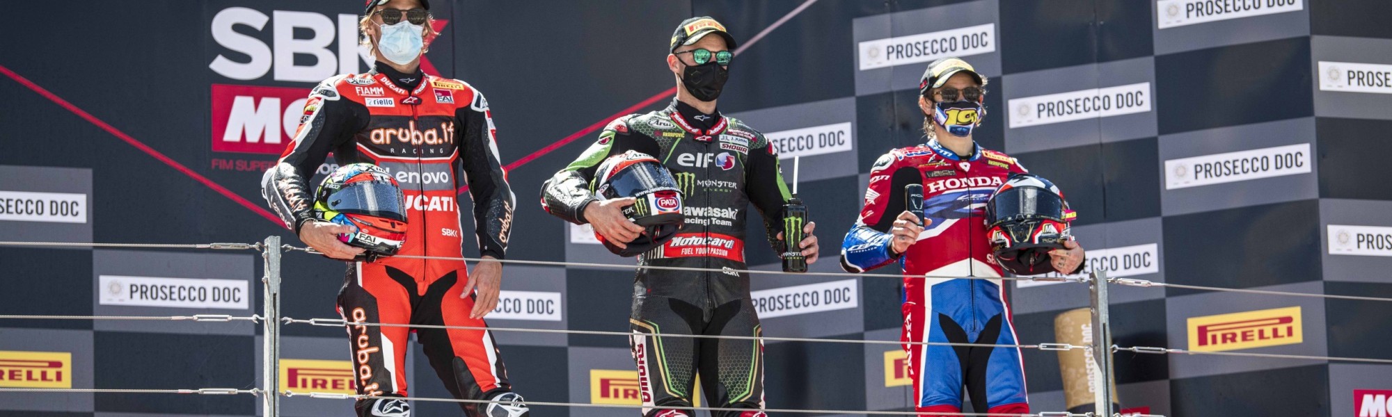 Day 2 of Round 4 of the WorldSBK Superpole and Race 2 took place on Sunday from MotorLand Aragon with the reigning Champion, Jonathan Rea (Kawasaki Racing Team WorldSBK) continuing his streak of victories in the Superpole races for this 2020 season followed by Championship leader Scott Redding on the (ARUBA.IT Racing – Ducati) and Michael van der Mark (PATA YAMAHA WorldSBK Official Team) making up the rest of the front row.