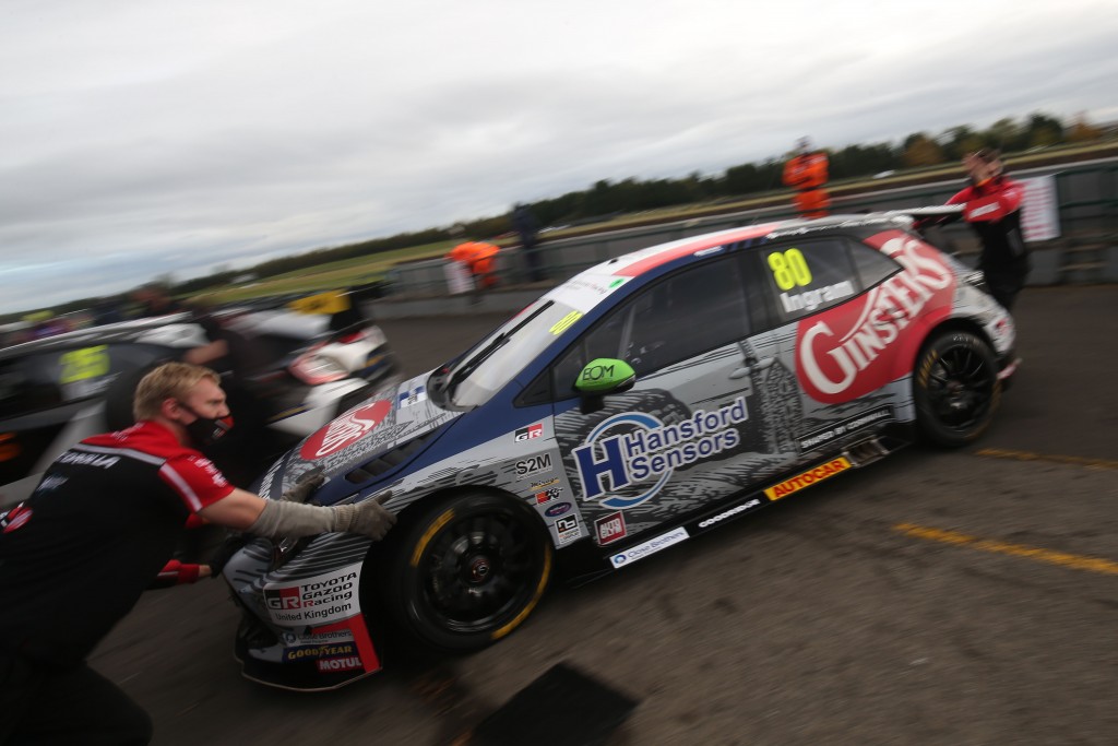 On the restart Cammish was fighting Chilton, with both Honda Civic FK8’s struggling with brake temperature issues. The discs were glowing as they were pushing hard. Cammish finally got past him on lap 13 and set about hounding down Ingram.
