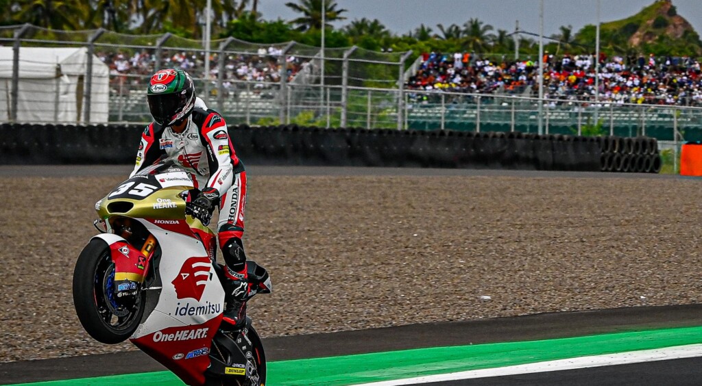 History has been made at the Indonesian GP with Somkiat Chantra taking his first race win, as well as the first race win for his country, Thailand. He took the lead at the first corner and never looked back, leading every lap of the race from there on. This dominant performance came despite the changeable weather conditions that faced the Moto2 grid.