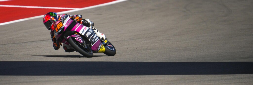 Andrea Migno has claimed pole position for tomorrow’s race in COTA. He will be joined on the front row by fellow-Italian, Dennis Foggia, and Xavier Artigas. Our championship leader, Sergio Garcia, had to settle for 11th.