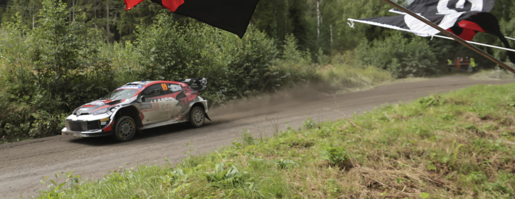 The final morning stage then, SS5 Ruuhimäki 1 – 7.76 km and Kalle found some pace to go fastest from Thierry and Elfyn. The Finn retook the lead by just 2 tenths of a second and Seb was a further three seconds back still in third. Their teammate Takamoto however hit a tree and broke a wheel. The Japanese star dropped five positions to ninth overall.