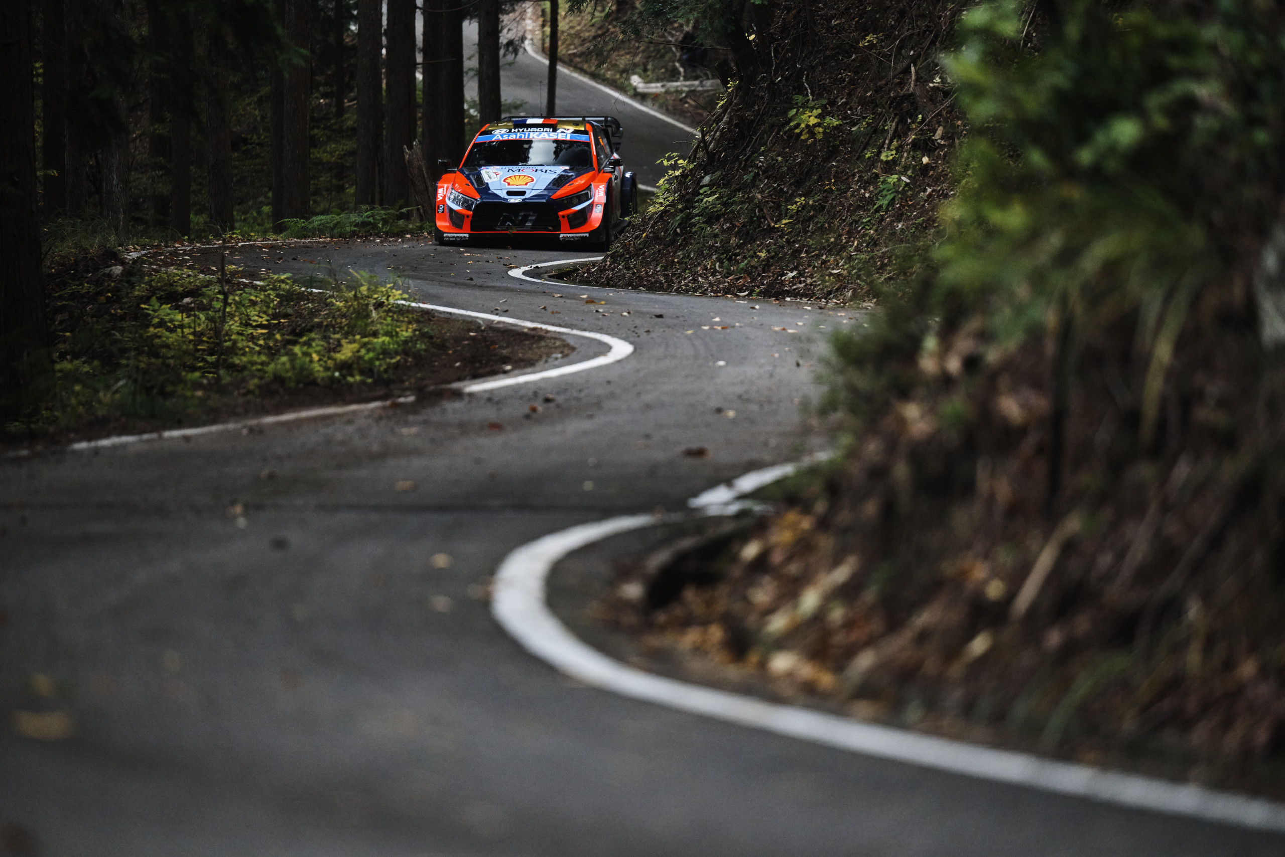 After the tyre fitting zone came SS11 Mt. Kasagi 2 – 21.74 km and once again Elfyn set the pace from Seb and Adrien. There was drama for Takamoto sadly who made a mistake and collided with some barriers in part of the stage. This impact caused damage to the front of his car and crucially caused damage to the power steering system meaning it failed in the stage. He struggled with the failure losing almost four and a half minutes and falling to seventh position. This meant that Adrien was now into third overall.
