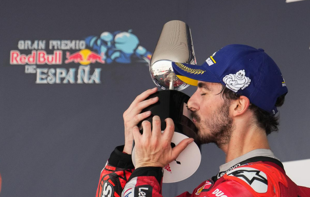 Back out in front the Bologna Bullet crossed the finish line to take Bagnaia’s first win and podium this season so far.