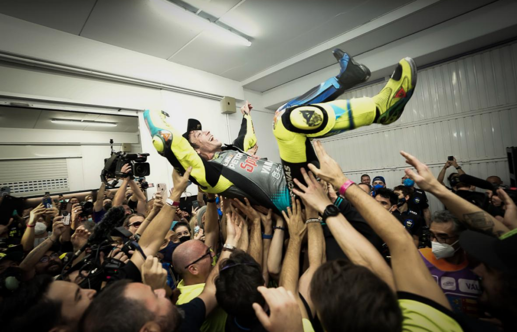 He has inspired so many people, not just celebrities like F1 driver Lando Norris or fellow Moto GP champion Fabio Quartararo, but millions of people around the world. You say Valentino Rossi and people just know. He has a natural ability to make people want to support and cheer him on with his charisma and affection for all his fans. The whole Moto GP paddock admire him and it showed with the last race in Valencia 2021. The whole pitlane came out for him and every rider got a private hug – his popularity is unhinged.