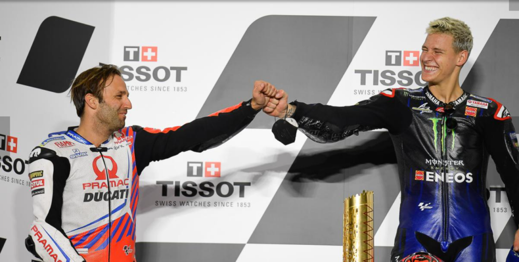 The two Frenchmen then fought for 2nd on lap 18. Zarco tried to defend but Quartararo’s Yamaha had conserved tyres better and was stronger on the corners, meaning he was able to take 1st place as well on turn 14, leading into turn 15, from Martin. The rookie had shocked everyone by leading for most of the race. Martin wasn’t going to give his position away easily and on the straight the Ducati roared past the Yamaha. But, Quartararo re-gained first place soon after.