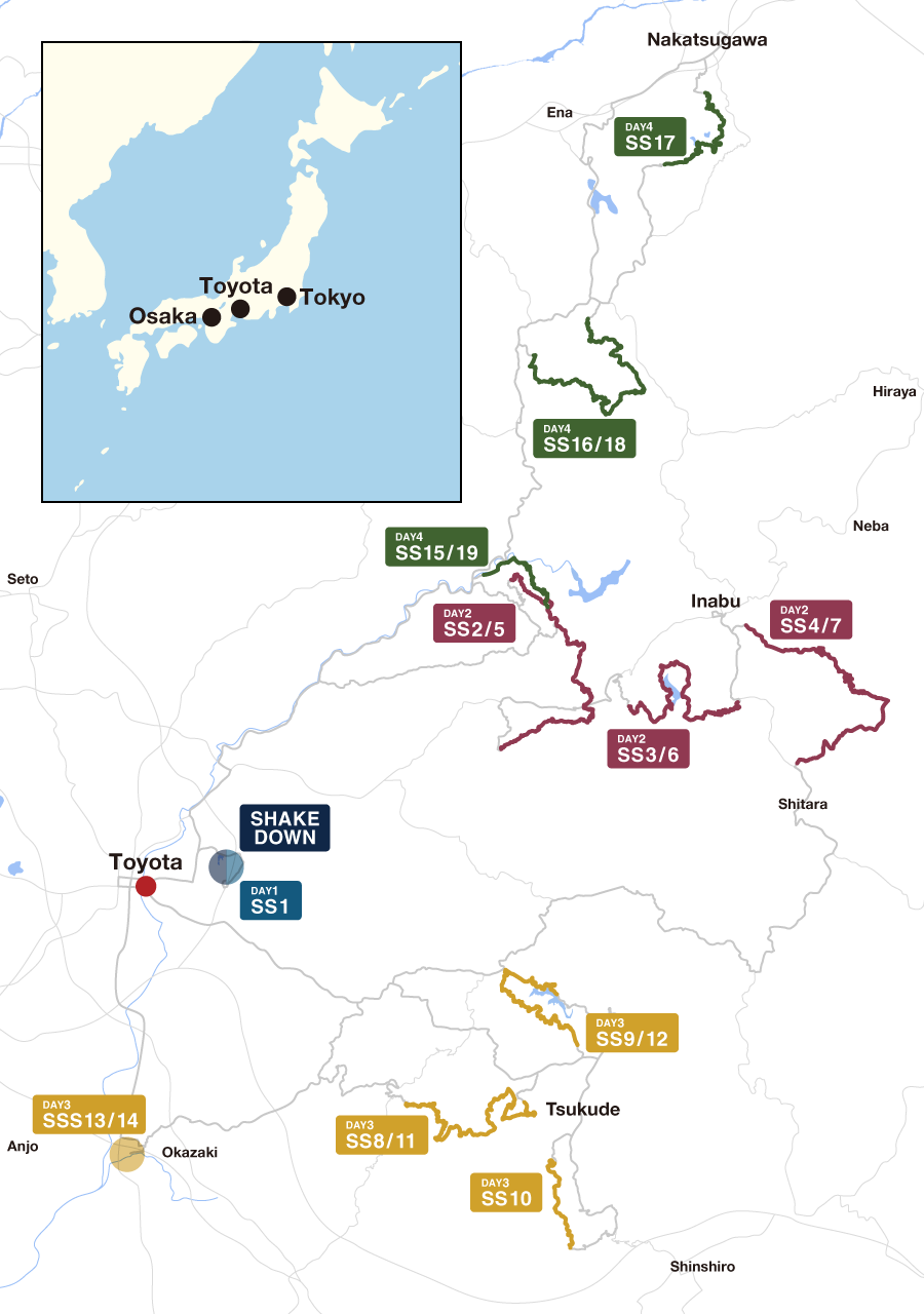 The itinerary on Saturday consists of seven stages, including two passes of the super special Okazaki City (1.40km).